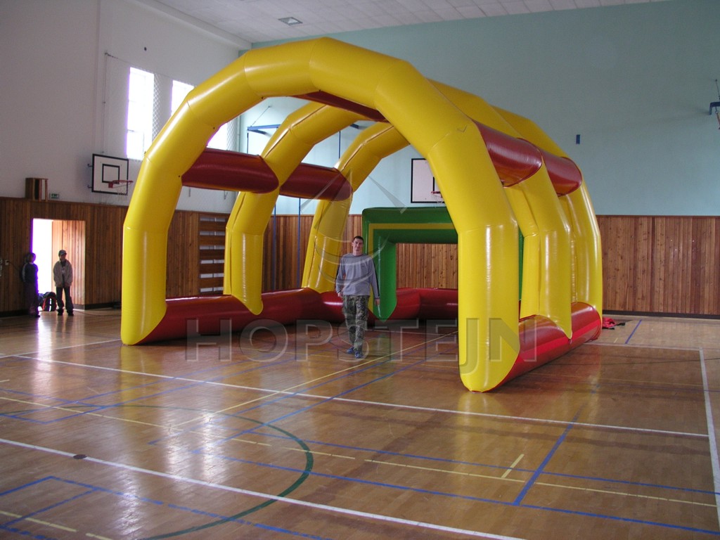 Mobilní nafukovací fotbalová branka. Lze využít jako klasickou fotbalovou bránu, bránu opatřenenou plachtou s potiskem a „otvory pro dobře mířené penalty“, plachtu se suchým zipem – trefování míčky na cíl, případně využití jako mobilního pódia. Atraktivní nafukovací atrakce vhodná pro open air promo akce. Při výrobě lze použít různých barevných kombinací, velikostí, bránu lze zmenšit o první oblouk, atd. Rychlost instalace (do 10 minut), možností osazení suchými zipy pro výměnné transparenty.