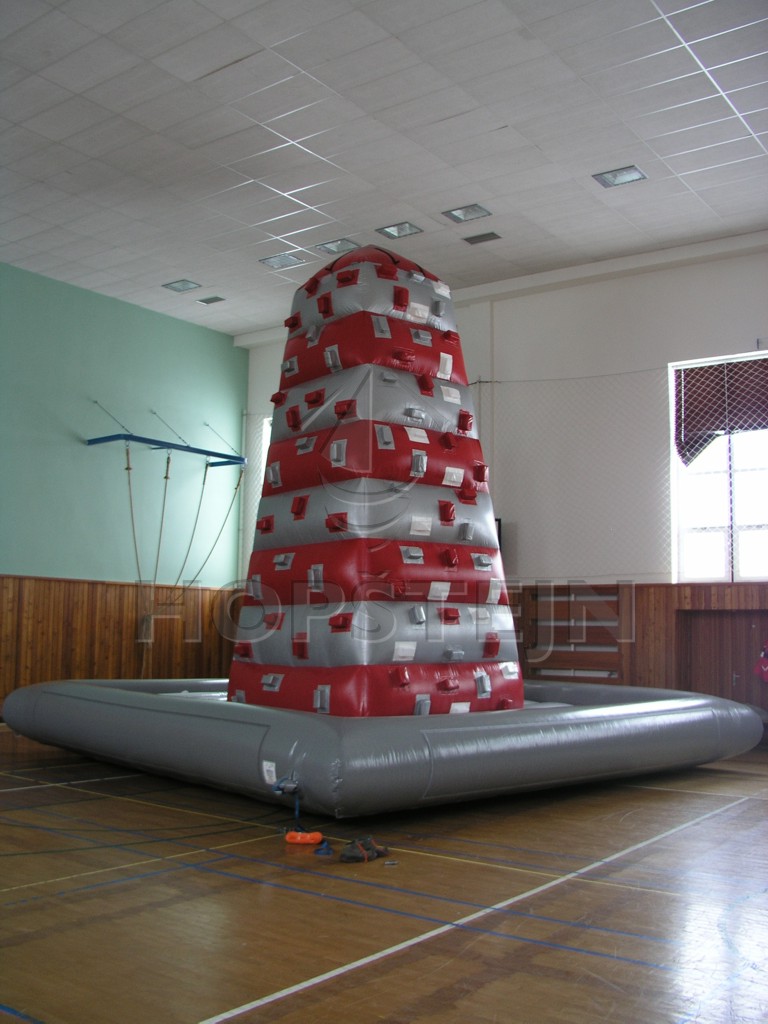 Mobilní nafukovací horolezecká stěna. Stupy vyrobené z molitanových tvrzených kvádrů. Atraktivní nafukovací atrakce vhodná pro open air promo akce. Jištění přes vrcholový jehlan, možnost výstupů ze tyř stran, různé stupně obtížnosti! Atrakce předčíl pevné horolezecké stěny rychlostí instalace (do 10 minut), možností výroby různých tvarů.