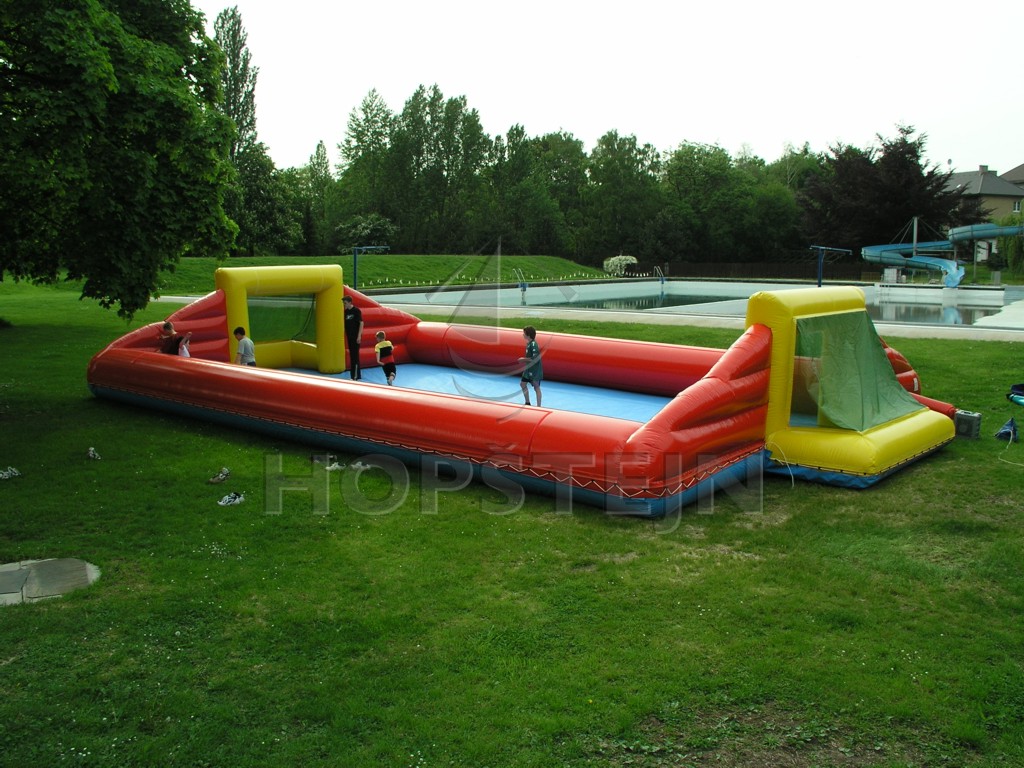 Nafukovací hřiště na fotbal, florbal, vodní fotbal a jiné aktivity. Nafukovací mantinely, brány, pevná PVC podlaha. Ideální atrakce na letní sezónu do kempů, na koupaliště… Velká barevná škála PVC plachtoviny. Suché zipy na hrazení pro Vaše transparenty.