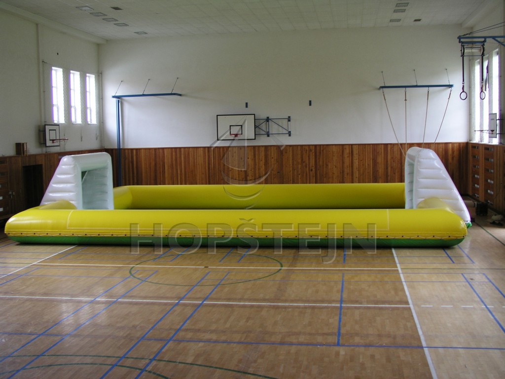 Nafukovací hřiště na fotbal, florbal, vodní fotbal a jiné aktivity. Nafukovací mantinely, brány, pevná PVC podlaha. Ideální atrakce na letní sezónu do kempů, na koupaliště… Velká barevná škála PVC plachtoviny. Suché zipy na hrazení pro Vaše transparenty.