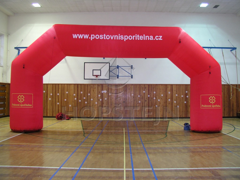 Reklamní nafukovadlo. Vhodné umístění: Start či Cíl sportovních závodů, zvýraznění hlavního vstupu do areálu promo akce. Díky suchým zipům umožnuje tento oblouk i umístění reklamních transparentů.