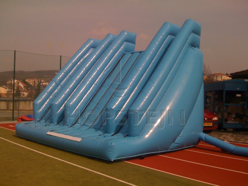 Nafukovací skluzavka sloužící jako část divadelní dekorace pro Městské divadlo v Brně ve hře Ptákoviny podle Aristofana. Herci se v rámci divadelní hry spouštějí po skluzavce k zemi z nebes, která jsou taktéž nafukovací. Fotografie z představení poskytlo Městské divadlo v Brně.