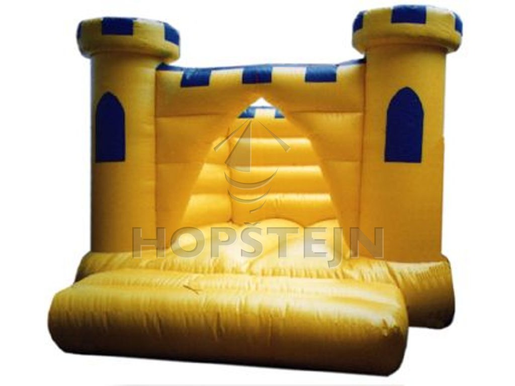 Mini skákací hrad, cenově nejvýhodnější typ, prostorově nenáročný, možnost použití jako domácký hrad – vhodné do školství a jiných nenáročných provozů. Kombinace barevných pruhů dle přání zákazníka.