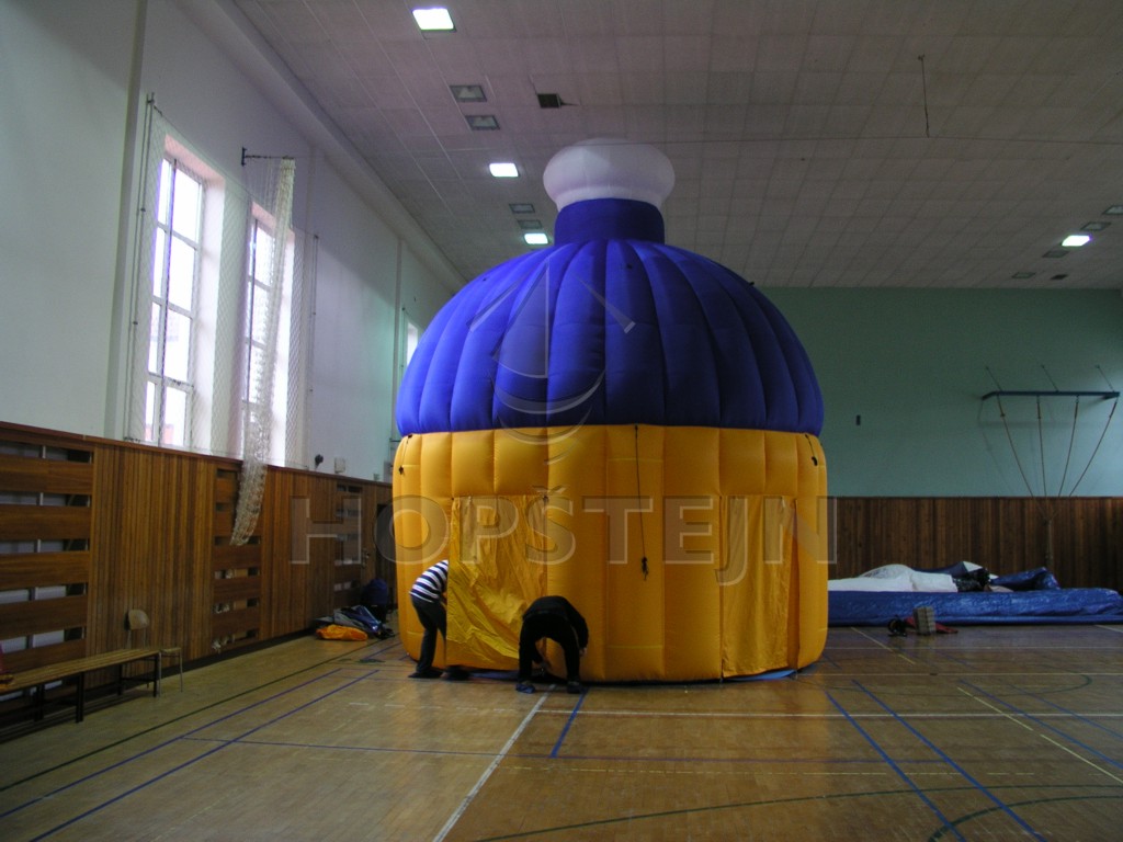Reklamní nafukovadlo sloužící k reprezentaci firemního produktu, stánek ve tvaru cyklistické lahve se třemi vchody do kterých lze vložit stoly a prostor ve stánku využít jako místo pro reklamní prospekty či předměty. Jedná se o nepřéhlednutelný způsob reklamy.