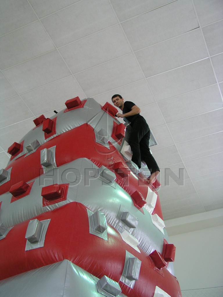 Mobilní nafukovací horolezecká stěna. Stupy vyrobené z molitanových tvrzených kvádrů. Atraktivní nafukovací atrakce vhodná pro open air promo akce. Jištění přes vrcholový jehlan, možnost výstupů ze tyř stran, různé stupně obtížnosti! Atrakce předčíl pevné horolezecké stěny rychlostí instalace (do 10 minut), možností výroby různých tvarů.