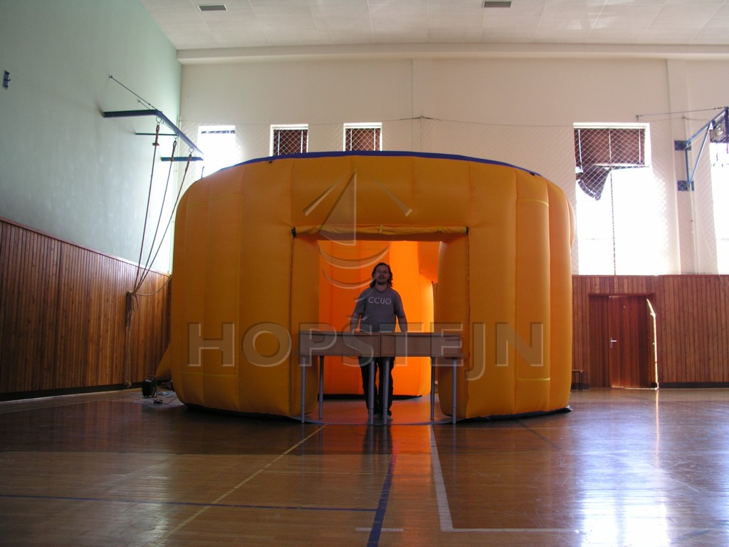 Reklamní nafukovadlo sloužící k reprezantaci firemního produktu. Jedná o nafukovací stánek se třemi vchody do kterých lze vložit stoly a prostor ve stánku využít jako místo pro reklamní prospekty či předměty. Jedná se o nepřéhlednutelný způsob reklamy.
