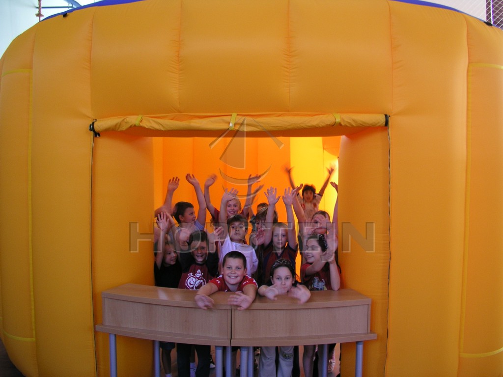 Reklamní nafukovadlo sloužící k reprezantaci firemního produktu. Jedná o nafukovací stánek se třemi vchody do kterých lze vložit stoly a prostor ve stánku využít jako místo pro reklamní prospekty či předměty. Jedná se o nepřéhlednutelný způsob reklamy.