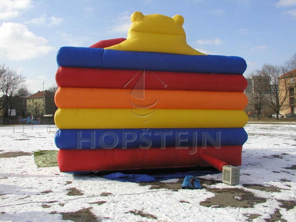 Neobvyklý skákací hrad. Uprostřed skákací plochy je umístěna koule, která pro děti nabízí další možnosti využití. Nejčastěji na ní děti mezi sebou souteží kdo se na tété koulí udrží delší dobu ve stoje s jistotou, že pokud spadnou, tak do měkého.