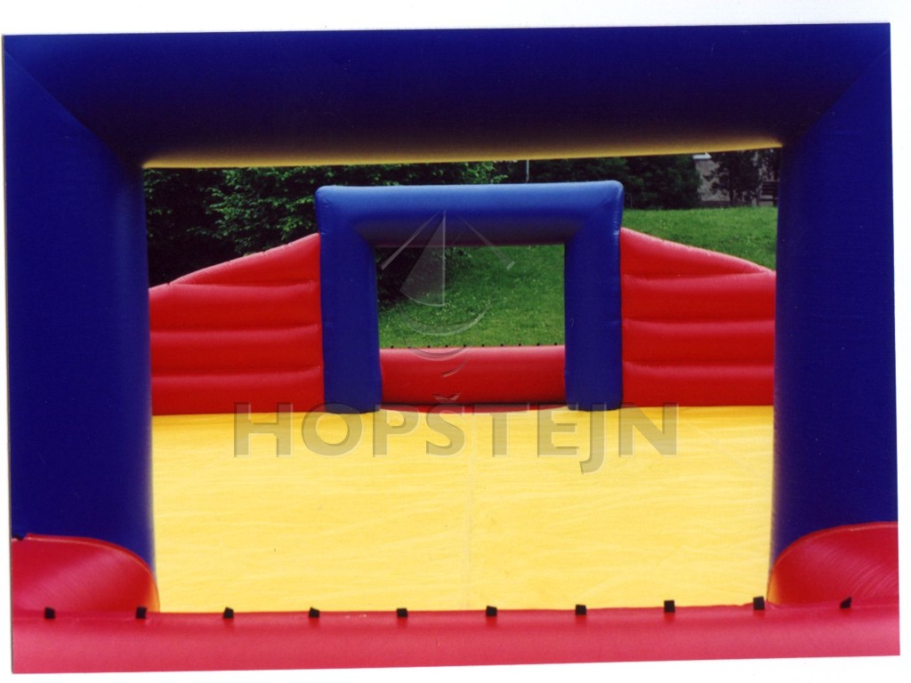 Nafukovací hřiště na fotbal, florbal, vodní fotbal a jiné aktivity. Nafukovací mantinely, brány, pevná PVC podlaha. Ideální atrakce na letní sezonu do kempů, na koupaliště, … . Velká barevná škála PVC plachtoviny. Suché zipy na hrazení pro Vaše transparenty.