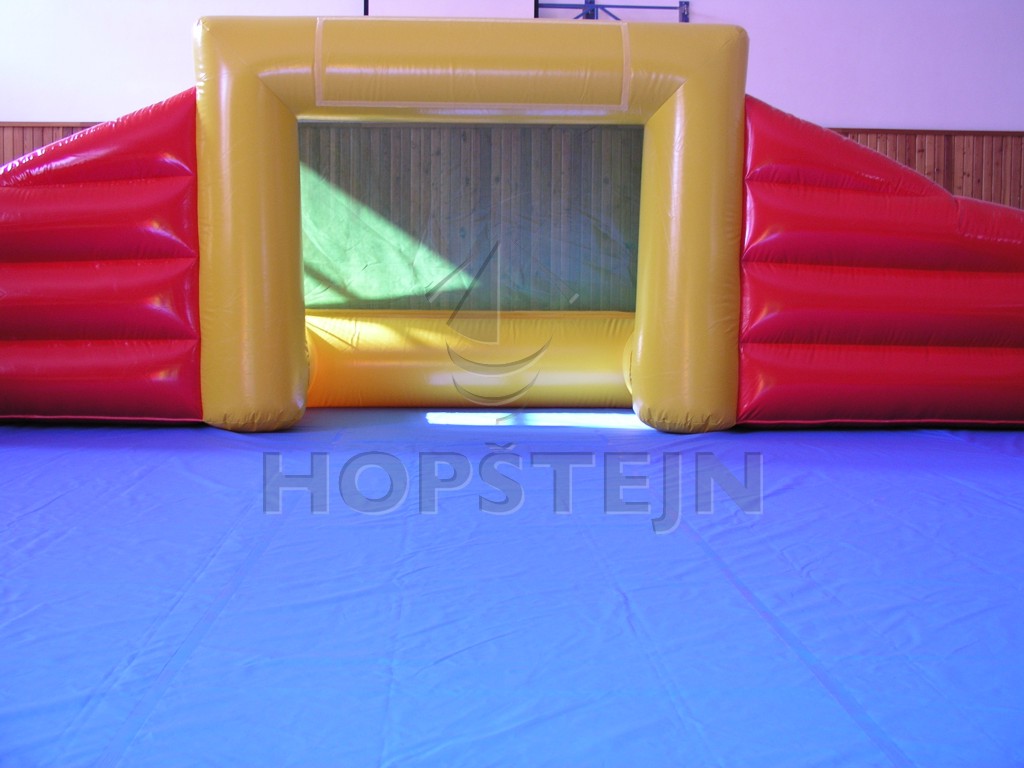 Nafukovací hřiště na fotbal, florbal, vodní fotbal a jiné aktivity. Nafukovací mantinely, brány, pevná PVC podlaha. Ideální atrakce na letní sezónu do kempů, na koupaliště… Velká barevná škála PVC plachtoviny. Suché zipy na hrazení pro Vaše transparenty.