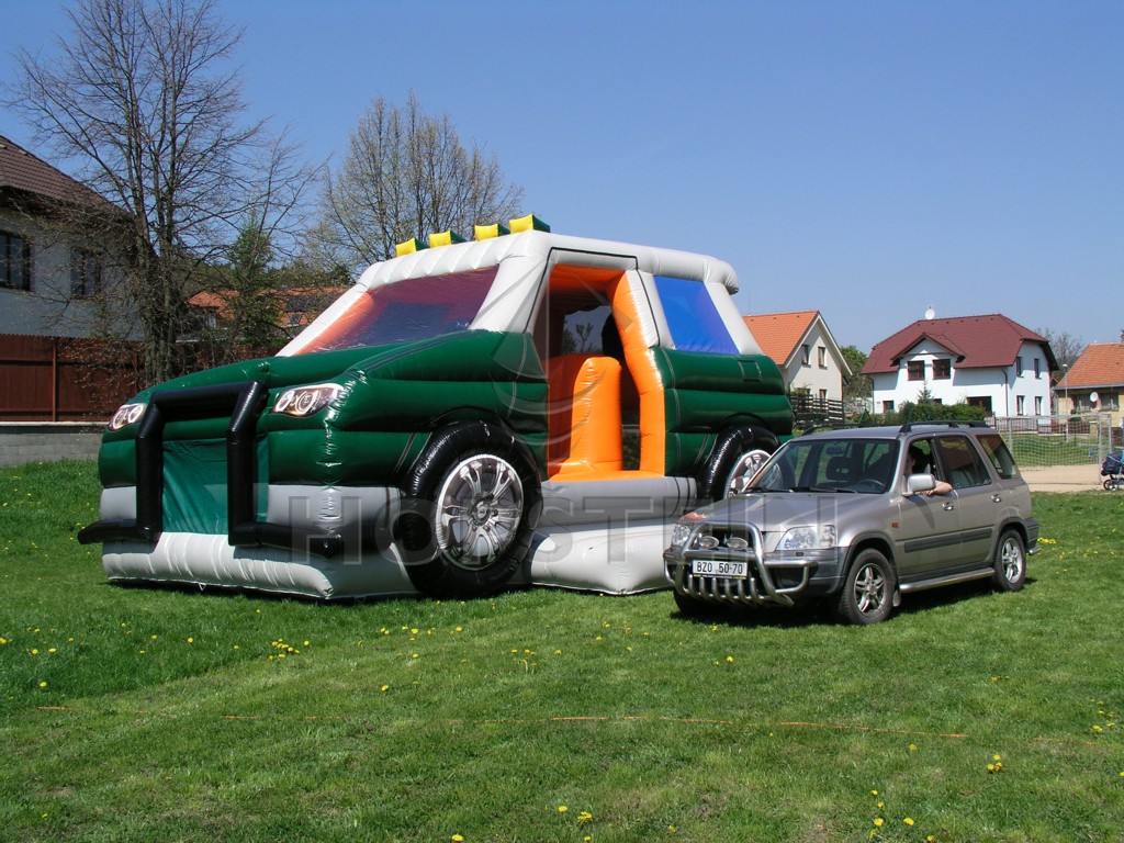 První terénní automobil SUV 4X4 z dílny Hopštejn, který mohou řídit děti od 3 let! Jednoduché řazení, trvalý pohon všech kol vzduchem. Airbagy kam se podíváte! Žádné ostré hrany! Při nárazu na pevnou překážku nezničitelné! Počet míst – 20! Nafukovací kabina!