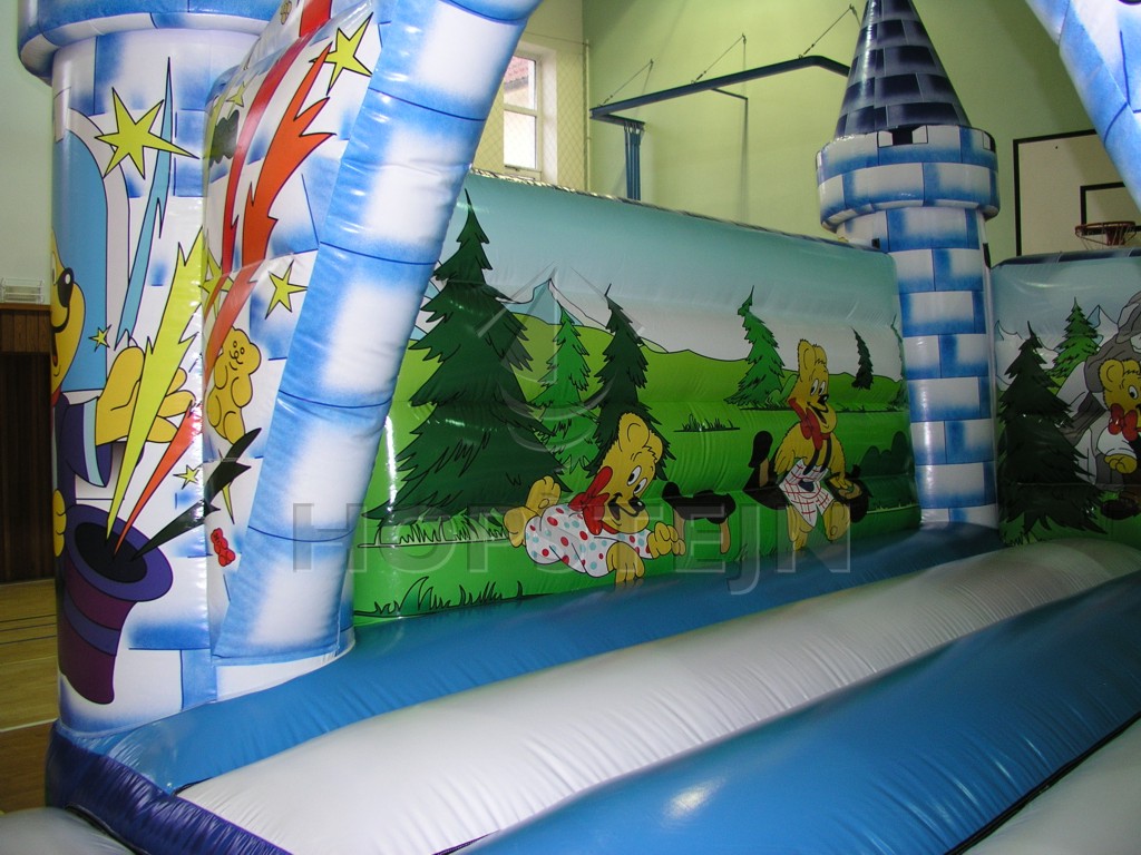 Klasický skákací hrad střední velikosti. Design na přání společnosti Haribo jako skákací hrad sloužící pro propagaci výrobků u obchodních domů na firemních akcích a při jiných reklamních příležitostech.