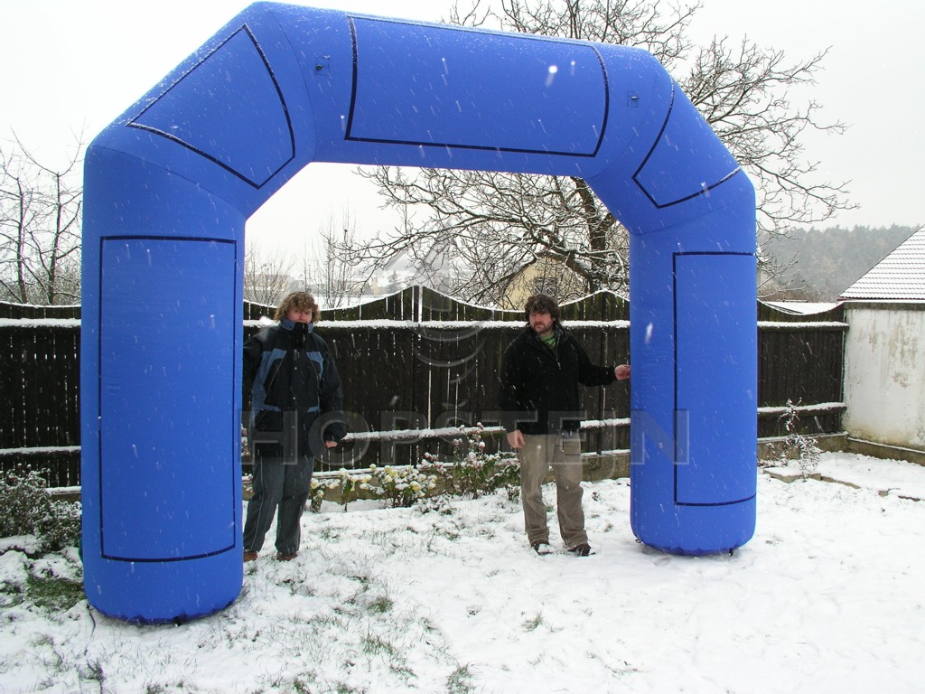 Reklamní nafukovadlo. Vhodné umístění: Start či Cíl sportovních závodů, zvýraznění hlavního vstupu do areálu promo akce, zviditelnění reklamního stánku během konání výstavních akcí. Díky suchým zipům umožnuje tento oblouk i umístění reklamních transparentů.