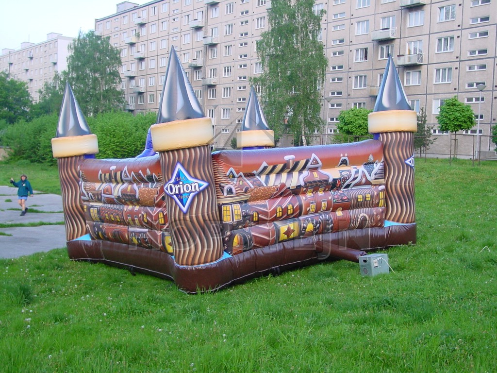 Velký hrad. Na obrázku v provedení pro firmu Nestlé, možno zvolit jakýkoliv design. Vhodný na velké promo akce, hrad s velkou propustností osob.