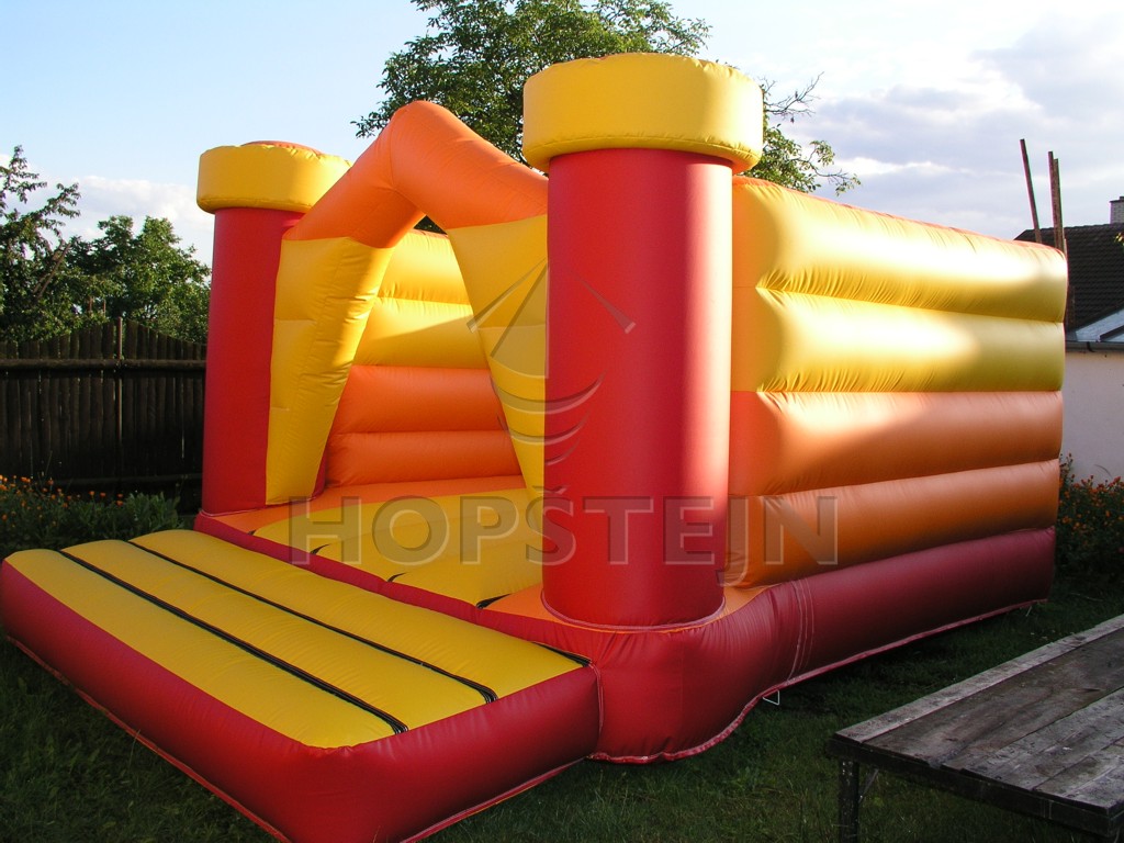 Malý skákací hrad, cenově výhodný typ, možnost použití jako reklamní hrad s výměnnými transparenty – uchycení na hradby pomocí všitých poutek. Kombinace barevných pruhů dle přání zákazníka.