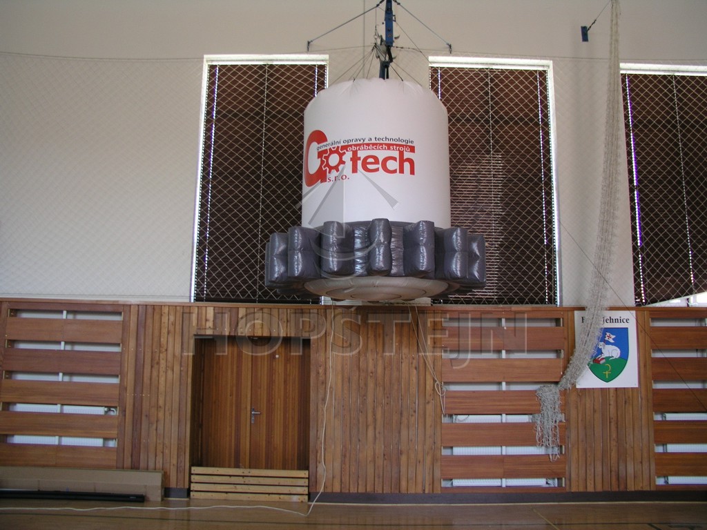 Reklamní nafukovadlo sloužící k reprezentaci a zviditelnění reklamního stánku na veletřžních akcích. Díky svým rozměrům je možné toto nafukovadlo umístit i v uzavřených prostorách pavilonu, ale je možné jej použít i ve venkovních prostorách. možnost zavěšení za strop.