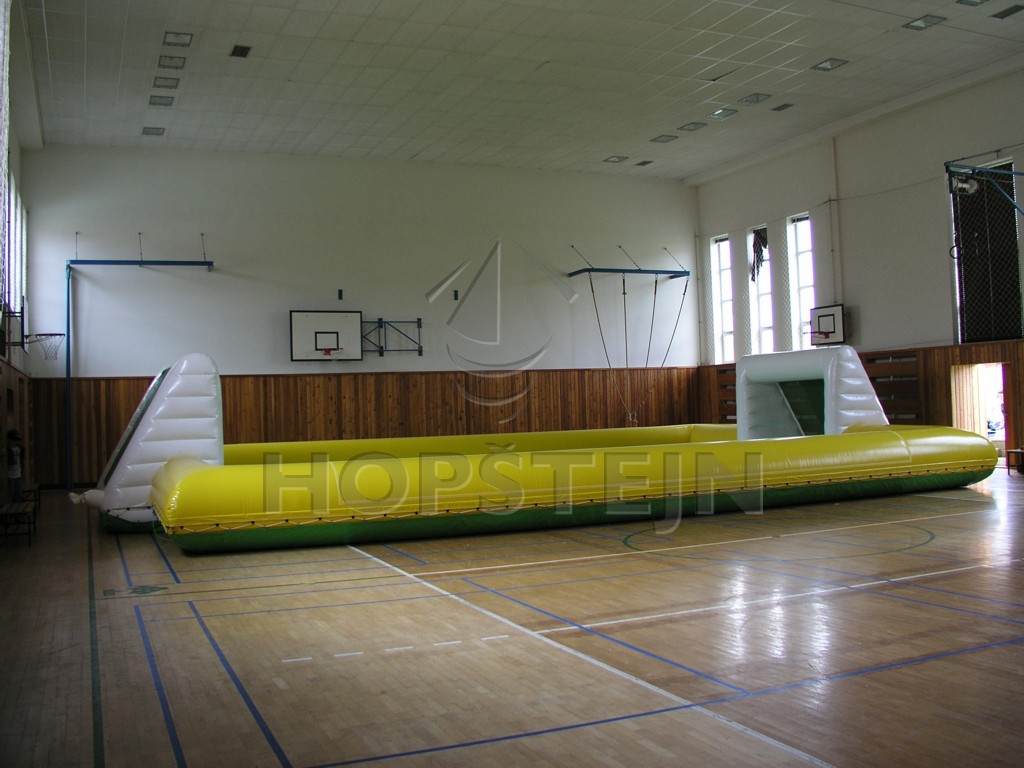 Nafukovací hřiště na fotbal, florbal, vodní fotbal a jiné aktivity. Nafukovací mantinely, brány, pevná PVC podlaha. Ideální atrakce na letní sezónu do kempů, na koupaliště… Velká barevná škála PVC plachtoviny. Suché zipy na hrazení pro Vaše transparenty.