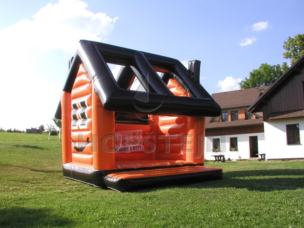 Skákací hrad originálních tvarů přímo podle požadavku společnosti AAA byty. Jedná se o skákací hrad ve tvaru rodinného domu s firemním potiskem. Střecha domu je odnímatelný transparent, který je možno měnit podle aktuální firemní akce či nabídky. Tuto atrakci je možné provozovat i bez „střechy“.