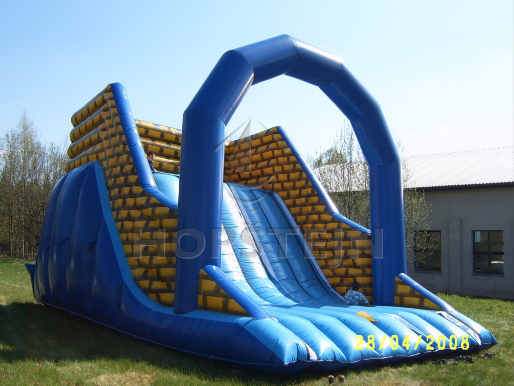 Nezvyklá velikost a základní tvar skluzavky. Po „schodech“ z tvrzeného molitanu nahoru, 3 metrové převýšení a dojezd 1,5 m. Design v tradičním oblíbeném stylu naší firmy, který je možné upravit dle Vašich potřeb a požadavků.