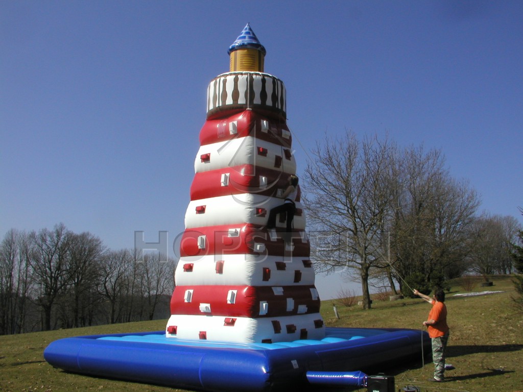 Mobilní nafukovací horolezecká stěna. Stupy vyrobené z molitanových tvrzených kvádrů. Atraktivní nafukovací atrakce vhodná pro open air promo akce ve tvaru majáku. Jištění přes vrcholový jehlan, možnost výstupů ze čtyř stran, různé stupně obtížnosti! Atrakce předčí pevné horolezecké stěny rychlostí instalace (do 10 minut), možností výroby různých tvarů.