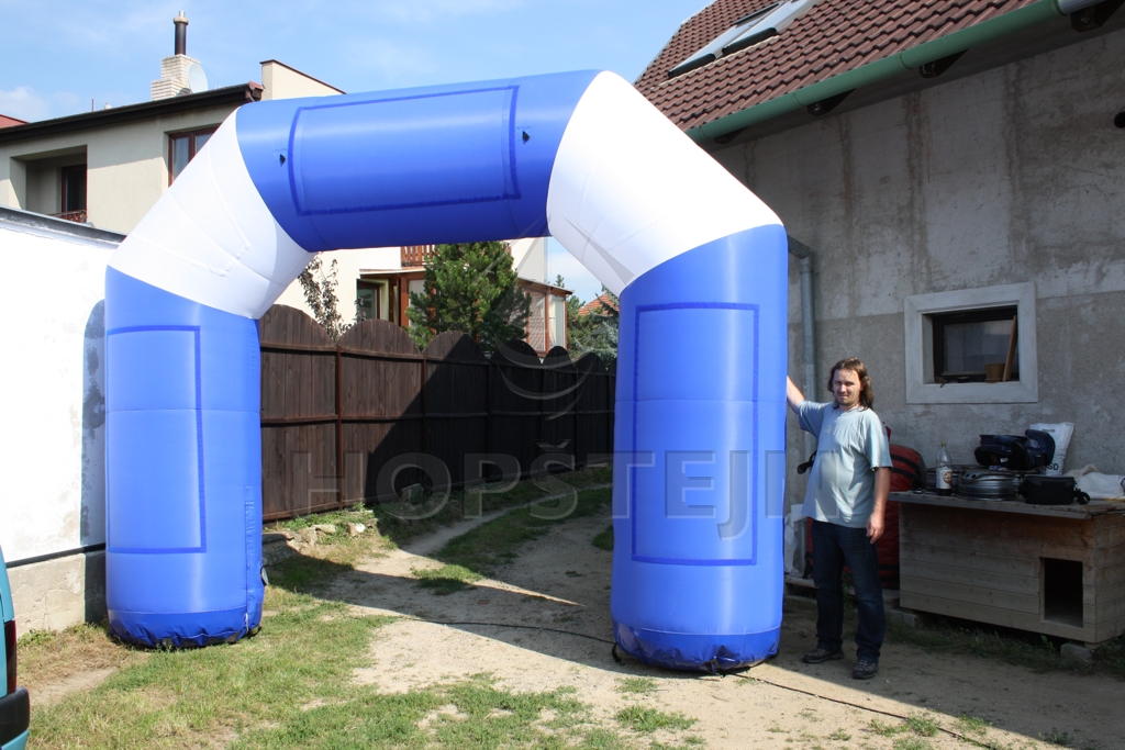Reklamní nafukovadlo. Vhodné umístění: Start či Cíl sportovních závodů, zvýraznění hlavního vstupu do areálu promo akce, zviditelnění reklamního stánku během konání výstavních akcí. Díky suchým zipům umožnuje tento oblouk i umístění reklamních transparentů.