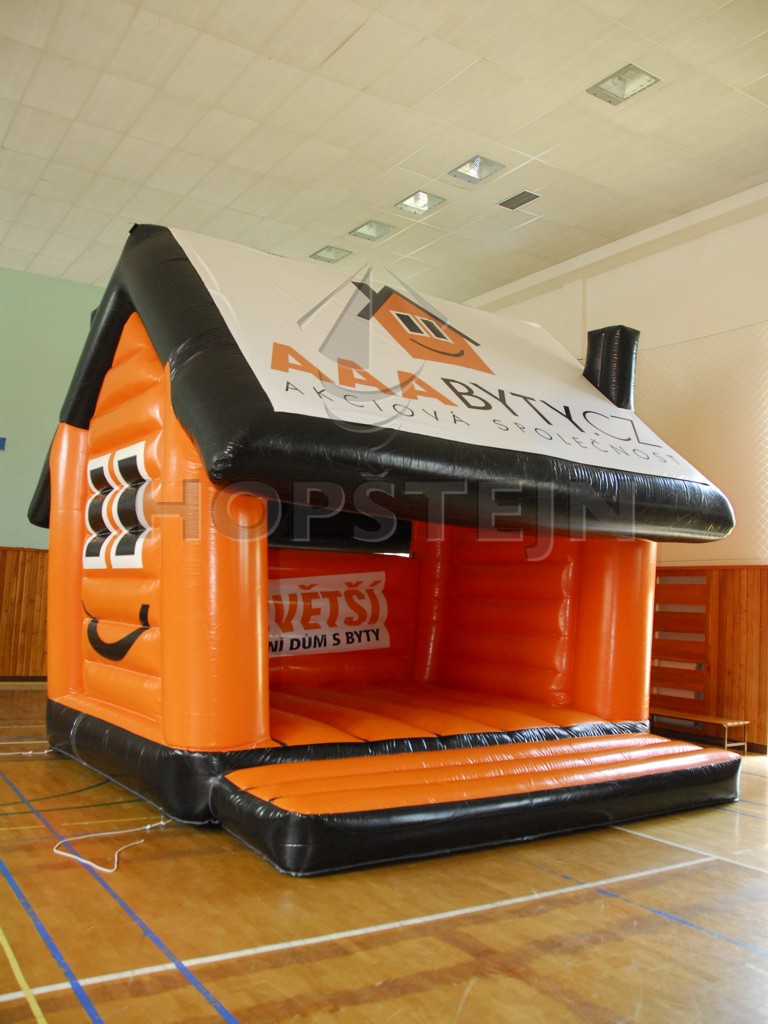 Skákací hrad originálních tvarů přímo podle požadavku společnosti AAA byty. Jedná se o skákací hrad ve tvaru rodinného domu s firemním potiskem. Střecha domu je odnímatelný transparent, který je možno měnit podle aktuální firemní akce či nabídky. Tuto atrakci je možné provozovat i bez „střechy“.