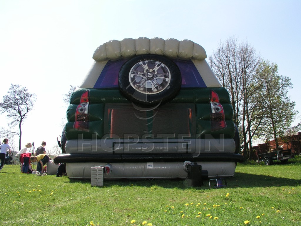 První terénní automobil SUV 4X4 z dílny Hopštejn, který mohou řídit děti od 3 let! Jednoduché řazení, trvalý pohon všech kol vzduchem. Airbagy kam se podíváte! Žádné ostré hrany! Při nárazu na pevnou překážku nezničitelné! Počet míst – 20! Nafukovací kabina!