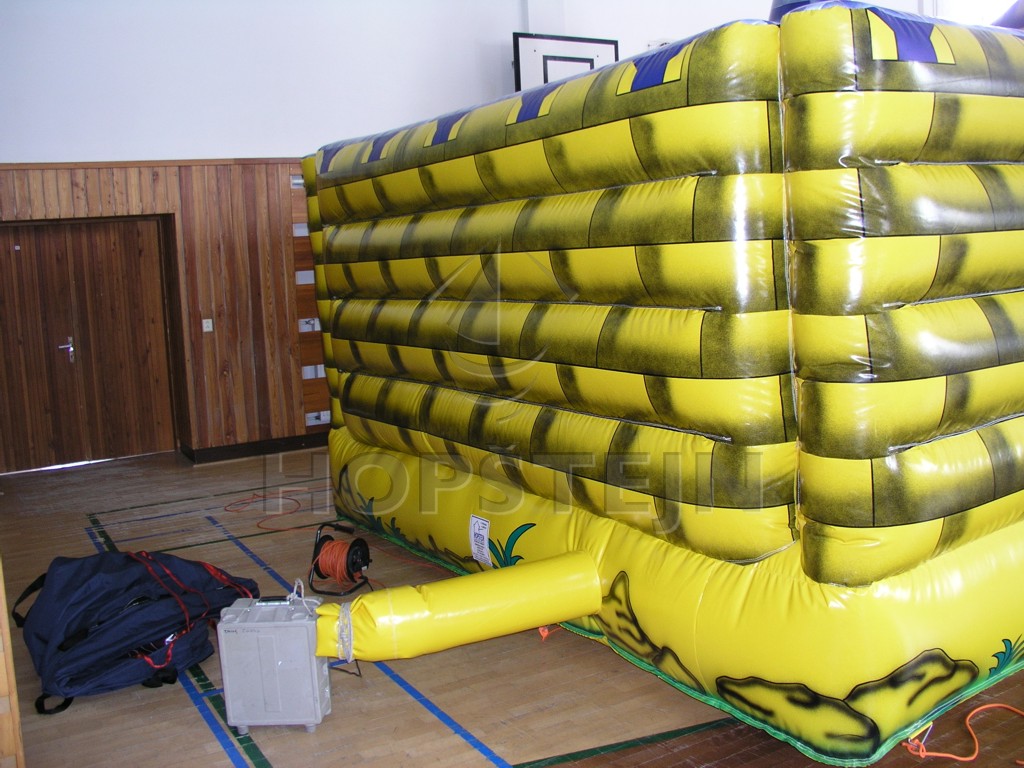 Střední skákací hrad, design stříkací technikou, strašidelný hrad, duchové hrající mariáš. Nejoblíbenější skákací hrad na českém trhu. Vyztužení skákací plochy polyesterovými pásky, spoje hrad + věž technikou průběžného pásu.