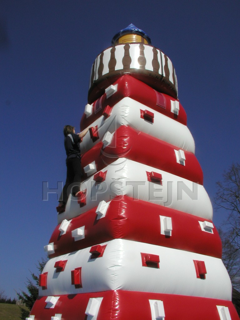 Mobilní nafukovací horolezecká stěna. Stupy vyrobené z molitanových tvrzených kvádrů. Atraktivní nafukovací atrakce vhodná pro open air promo akce ve tvaru majáku. Jištění přes vrcholový jehlan, možnost výstupů ze čtyř stran, různé stupně obtížnosti! Atrakce předčí pevné horolezecké stěny rychlostí instalace (do 10 minut), možností výroby různých tvarů.