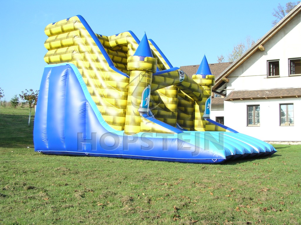Základní velikost skluzavky. Provazovým žebříkem nahoru, 2,5 metrové převýšení, dojezd 1,5 m. Design v tradičním oblíbeném stylu naší firmy. Možnost libovolné barevné kombinace dle Vašeho přání.
